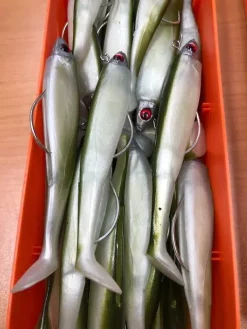 De Swat Shad is speciaal ontworpen om te worden gemonteerd met een ronde Texaanse haak met een gelede Ange Porteux hoofd, waardoor het een geweldige wiebelende actie geeft.